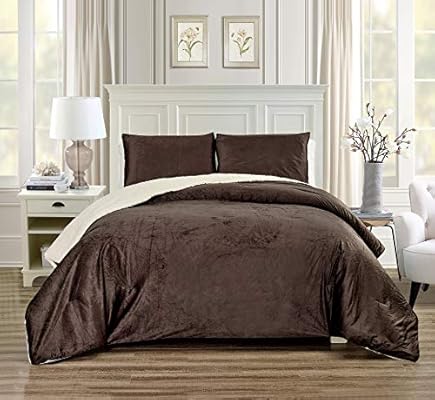 طقم لحاف جراند لينن من قماش المايكرو مينك بني سادة مع ظهر شيربا بوريغو فائق النعومة فراش متين دافئ بني King Amazon Ae