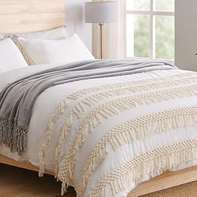غطاء لحاف قطني بشراشيب معقود من Kb Me Minimalist Boho Chic بلون عاجي صلب بلون الكريمي بلون الماكريمي بلون الماكريمي مع غطاء لحاف من 3 قطع بلون شام طقم مفروشات لكجري