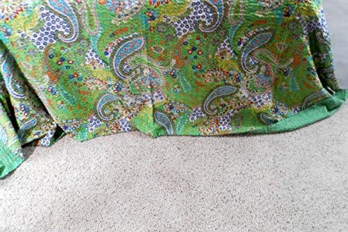 بطانية My Craft Palace بلون أخضر هندي مخيطة يدوي ا Kantha مقاس الملكة لحاف قطن تصميم بيزلي فريد من نوعه مفرش سرير Amazon Ae