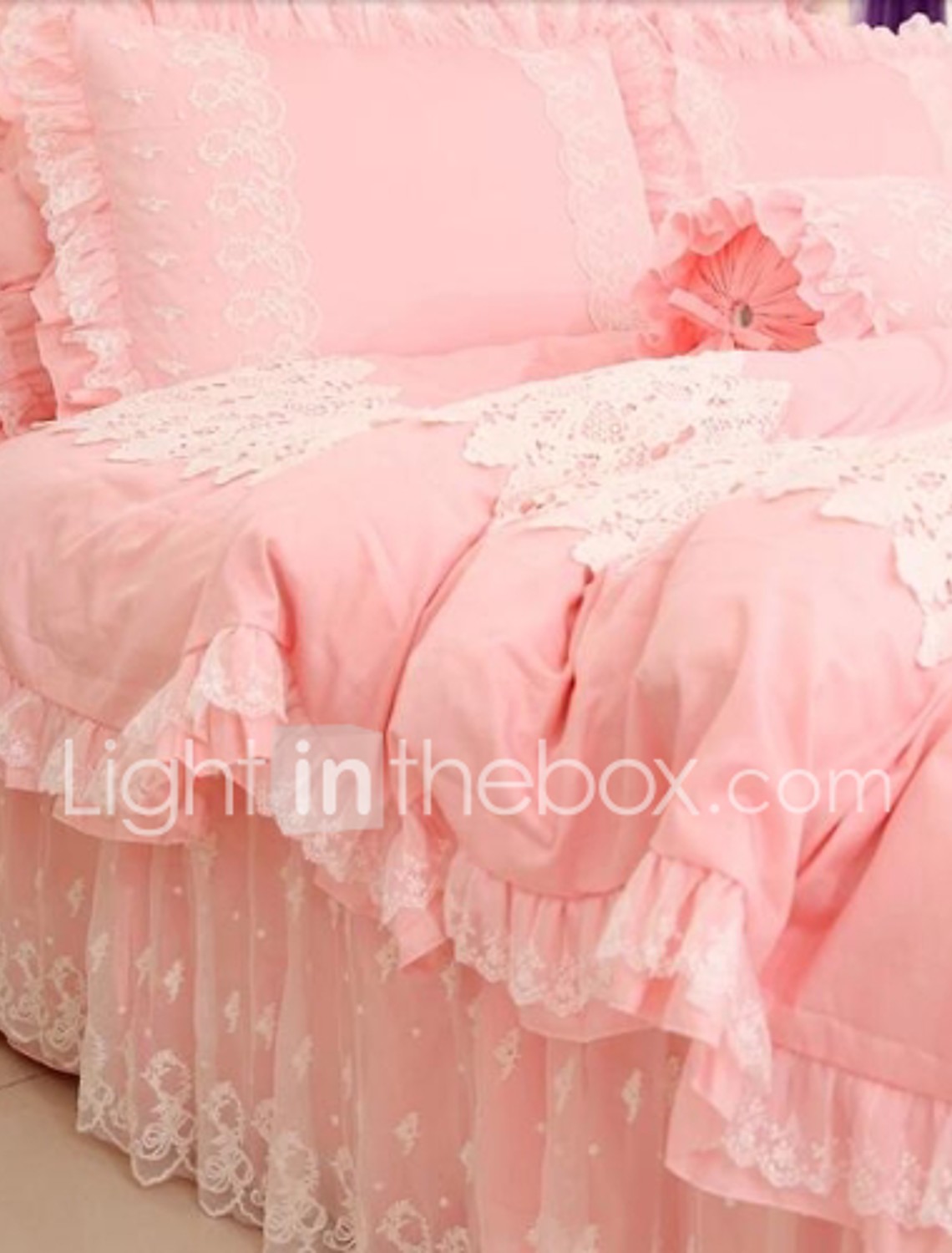 Fadfay الكورية الأميرة الوردية مجموعة الفراش الأبيض الدانتيل تكدرت التنانير السرير الفراش مصمم ملكة 2131246 2020 195 91