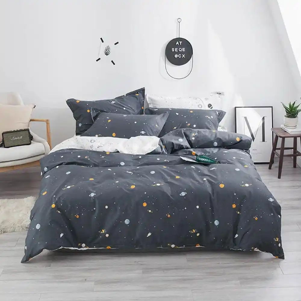 2019 رمادي داكن الفضاء نجوم Ins الكرتون غطاء السرير لينة القطن Bedlinens التوأم الملكة الملك حاف مجموعة غطاء المفرش سادات مجموعات الفراش Aliexpress