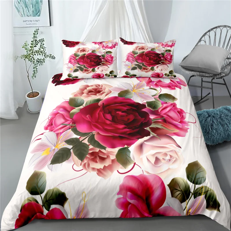 يي تشو شين الأحمر روز طقم سرير الملكة حجم مجموعات لحاف السرير غطاء لحاف طقم فرش أسرة كينج سايز مجموعات الفراش Aliexpress