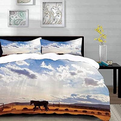 مجموعة الفراش الديكور الغربي الحصان في وادي النصب فتح السماء مع الغيوم في ولاية اريزونا أمريكا المناظر الطبيعية كريم الأزرق غطاء لحاف واحد وسائد 50 80 سم Amazon Ae