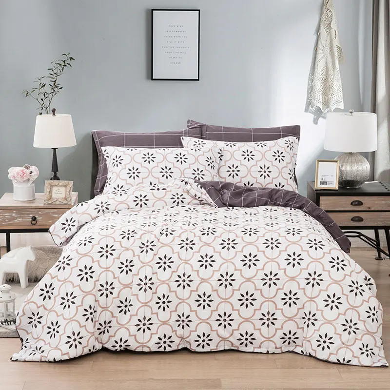 طقم ملائات سرير مطبوع من القطن الخالص A B على الوجهين نمط البساطة غطاء سرير غطاء لحاف المخدة 4 قطعة Ropa De Cama Aliexpress