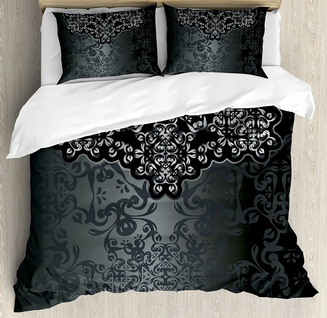 الظلام رمادي غطاء لحاف مجموعة خمر دمشقي مستوحاة حلية الفيكتوري الدوامات Curlicues الفني 4 قطعة الفراش مجموعة مجموعات الفراش Aliexpress