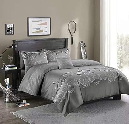 غطاء لحاف من Fang Jiu Jin Sjt 3 قطع بوليستر 200tc بلون زهري دمشقي عصري طراز عصري من نمط مطرز أمريكي كيس وسادة بدون أغطية رمادي 135x200 2pcs Amazon Ae