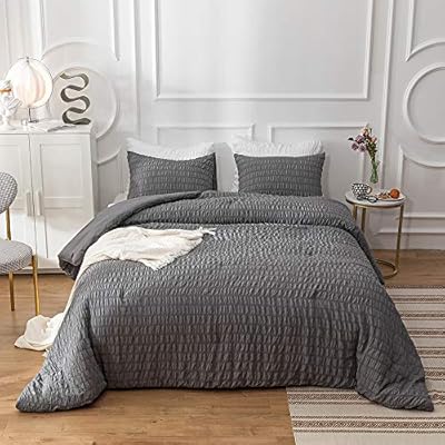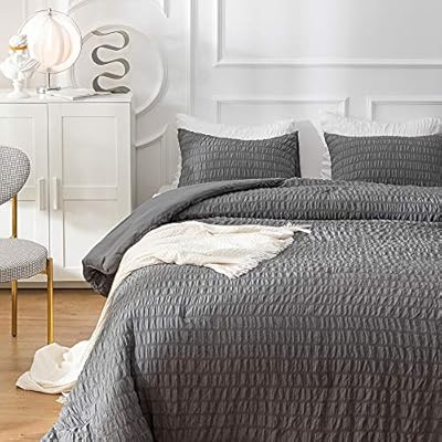 مجموعة لحاف من Jumeey Grey Seersucker من الشاش الرمادي الداكن بطانية الفراش للرجال والأولاد رمادي سادة لحاف مجموعات كاملة بنات نساء رمادي فحمي لحاف كامل اشتري اون لاين بأفضل الاسعار في السعودية