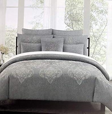 طقم لحاف 3 قطع فاخر فاخر من Tahari Home Maison لونه رمادي مزركش بخيط دمشقي فضي لامع Amazon Ae