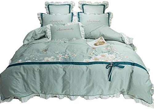 مجموعة غطاء اللحاف الجديدة من خامة القطن طويلة التيلة خضراء زرقاء مطرزة بنقوش زهور بيضاء من سبع مجموعات من أغطية السرير من أغطية السرير بنمط لحاف هدايا فندقي Mjzcuican 200 230cm Amazon Ae