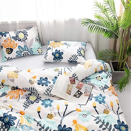 طقم أغطية لحاف عصرية بيضاء من Bbset 3 قطع مرسوم عليها زهور وأوراق أشجار وأشجار وأشجار وأوراق الزهور والنباتات والأغطية قطن King Amazon Ae
