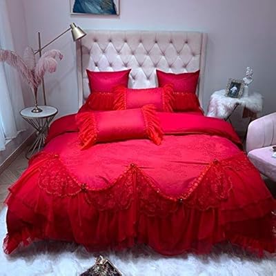 طقم لحاف من Qtta 100 من القطن للسرير الزفاف Queen King مقاس مزدوج أبيض وردي أحمر غطاء لحاف كيس وسادة مفرش سرير Amazon Ae