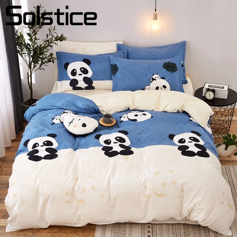 Solstice المنسوجات المنزلية حاف الغطاء كيس وسادة ورقة مسطحة الباندا الكرتون طقم سرير طفل صبي في سن المراهقة فتاة بياضات سرير التوأم كامل 3 4 قطعة في مجموعات الفراش من المنزل والحديقة على