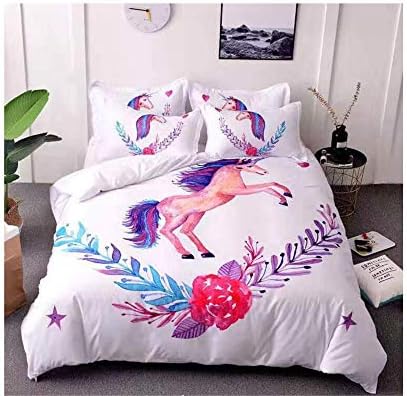 Otob القطن الكرتون يونيكورن الملكة كامل لحاف غطاء سرير مجموعه الفتات الأطفال في سن المراهقة الفراش مجموعات كامله الحجم 3 قطعه للنساء طفل رضيع مخطط عكسها 1 غطاء لحاف جديد 2