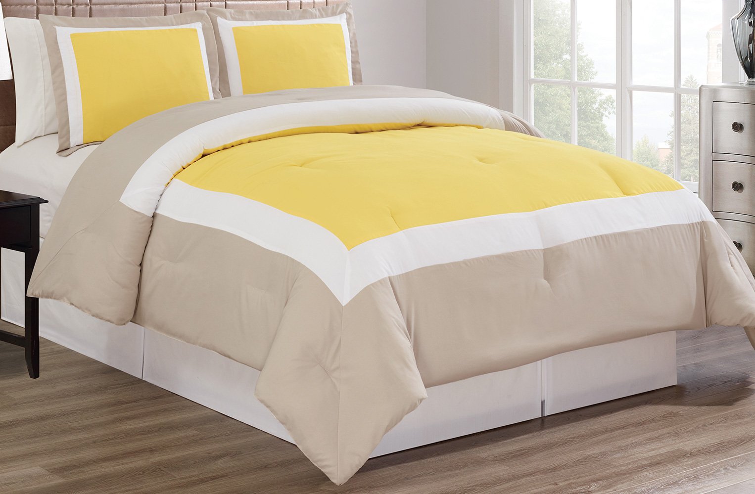 مجموعة غطاء لحاف من 3 قطع من جراند لينن باللون الأصفر الرمادي الأبيض مقاس كوين يتضمن غطاء واحد وغطاءين مزخرفين ألياف دقيقة ناعمة فاخرة وناعمة ومتينة للغاية اشتري اون لاين بأفضل الاسعار