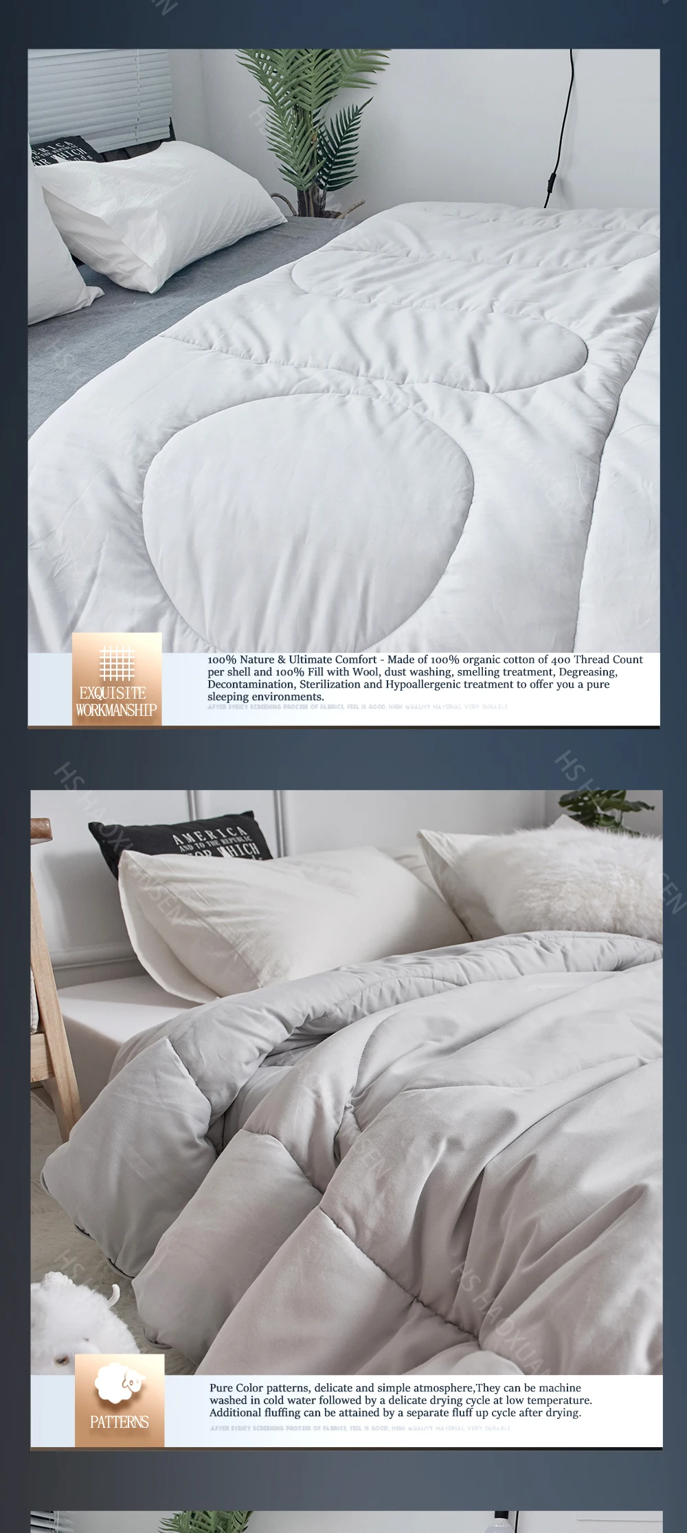 تنفس الصوف علامة جميع المواسم 100 القطن العضوي غطاء الصوف المعبأ المعزي الموردين والمصنعين الصين مصنع مجموعة لانس