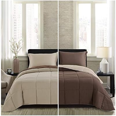 طقم لحاف خفيف الوزن من Homelike Moment طقم لحاف صيفي بديل لجميع المواسم 3 قطع 1 لحاف مع 2 أغطية كاملة كوين بني اللون بيج Amazon Ae