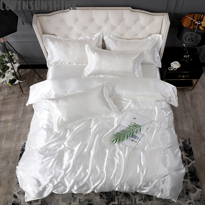 ترقية 100 الساتان طقم فراش من الحرير الفاخرة غطاء لحاف ريش و المخدة غطاء سرير مجموعة واحدة مزدوجة Bedclothe حريري طقم سرير مجموعات الفراش Aliexpress