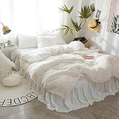 طقم سرير من 3 قطع من Ycazsh فاخر من الفرو الصناعي من القطيفة غطاء لحاف شتوي مع غطاء وسادة مقاس كوين مزدوج بلون سادة بدون ملاءات وحشوات ابيض Queen Amazon Ae