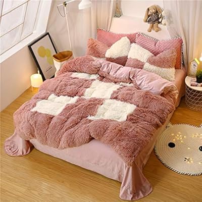 طقم سرير من القطيفة شعثاء فاخر من Moowoo 4 قطع 1 غطاء لحاف فرو صناعي منفوش 1 ملاءة سرير مخملية 2 غطاء وسادة مزخرف إغلاق بسحاب 4 قطع الملكة البيضاء Amazon Ae