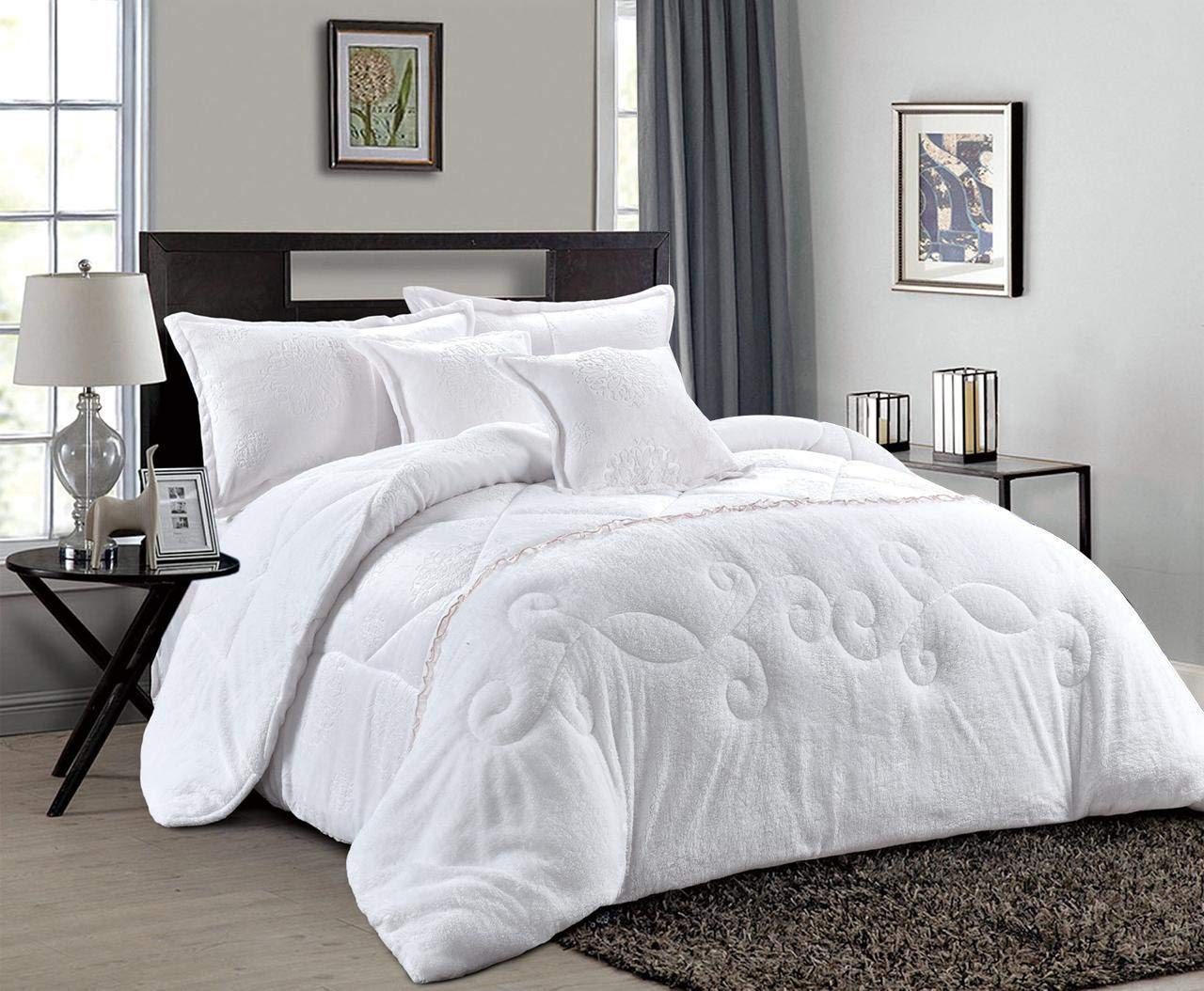 غطاء لحاف سرير من Uhamho مصنوع من فرو صناعي مخملي منفوش غطاء لحاف سفلي مع أغطية وسائد فائق النعومة دافئ ومتين أبيض مزدوج اشتري اون لاين بأفضل الاسعار في السعودية سوق كوم