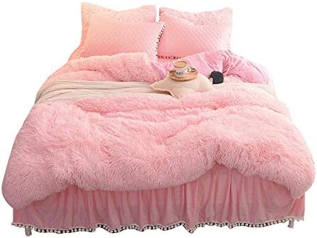 طقم مفرش سرير شتوي مقاس كينغ سرير فردي وردي أشعث فلانيلا 4 قطع غطاء لحاف 2 كيس وسادة 1 ملاءة سرير مبطنة 3 جوانب بتنورة سرير Single Amazon Ae