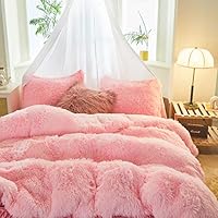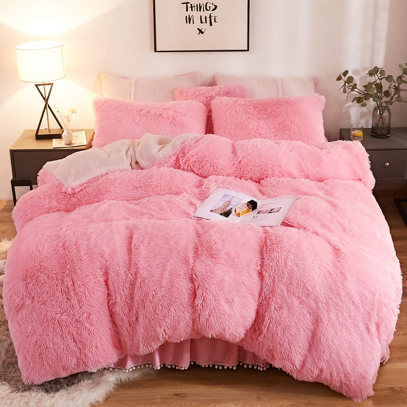 غطاء لحاف Joyreap من القطيفة شعثاء قطعة واحدة غطاء لحاف فاخر من الفرو الصناعي المزغب سحاب مخفي وأركان رابطة عنق وردي فاتح 90x90 بوصة Amazon Ae