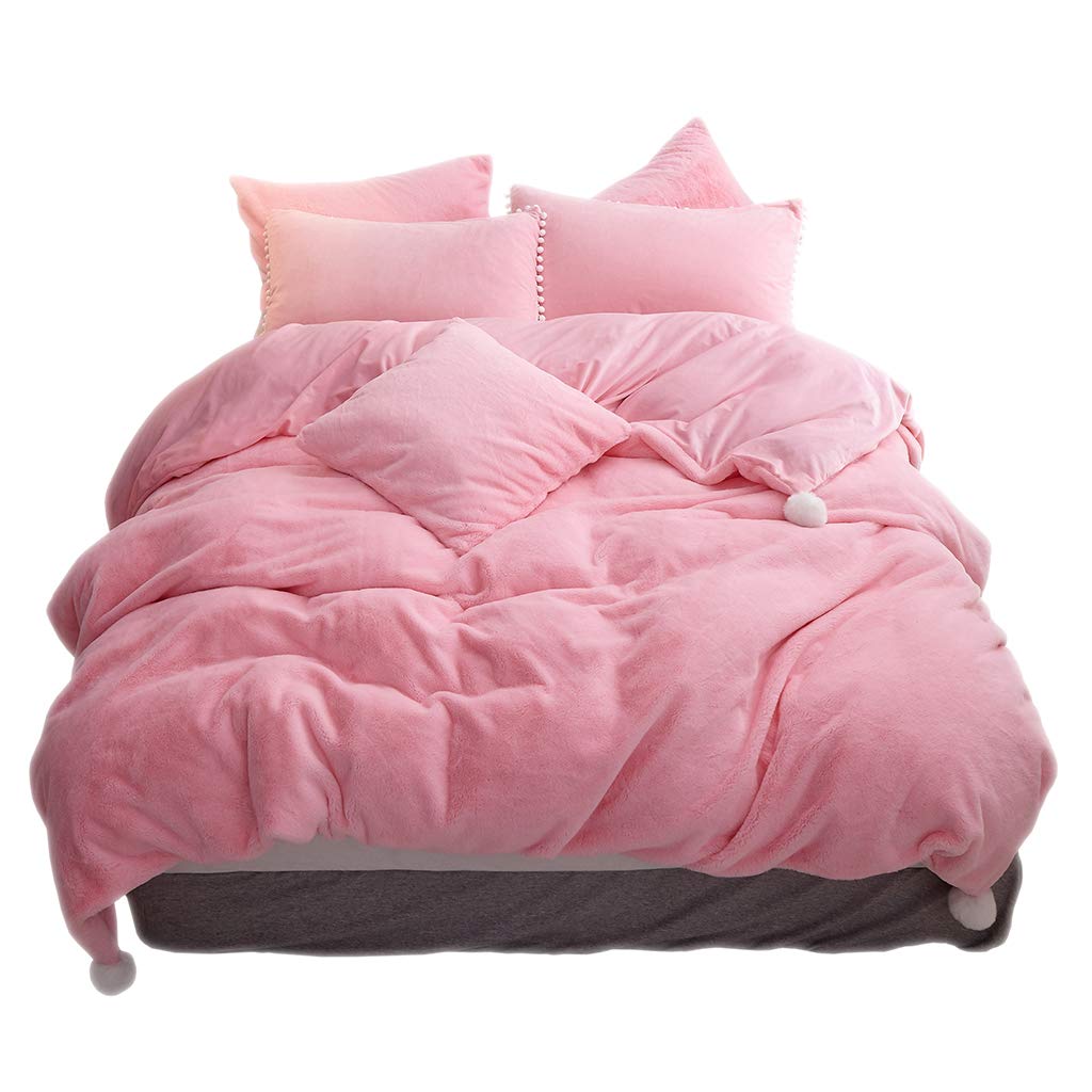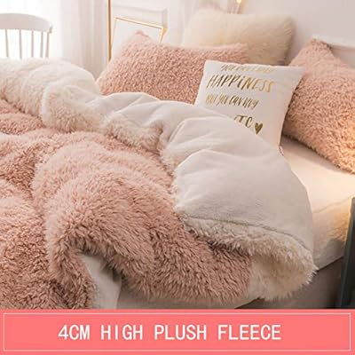 طقم سرير من القطيفة شعثاء فاخر من Moowoo 4 قطع 1 غطاء لحاف فرو صناعي منفوش 1 ملاءة سرير مخملية 2 غطاء وسادة مزخرف إغلاق بسحاب 4 قطع الملكة البيضاء Amazon Ae