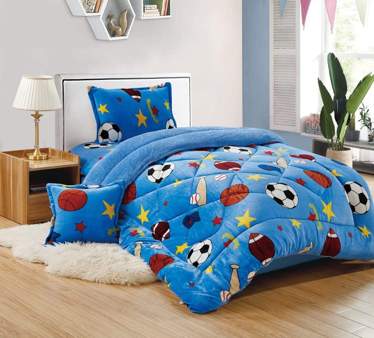 سعر موون طقم لحاف 4 قطع مفرش سرير أطفال شتوي فرو صناعي ازرق Balls فى السعودية بواسطة امازون السعودية كان بكام