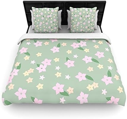 Kess الأصلية من Kess Inhouse أزهار الربيع لون أخضر بلون وردي 68 بواسطة 88 منسوج من غطاء اللحاف مقاس مزدوج Amazon Ae