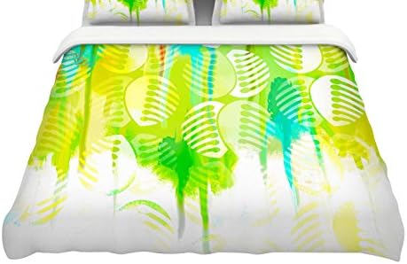 Ds1018 A من Kess Inhouse Dan Sekanwagi Poddy وأمشاط طلاء الرطبة لون أخضر باللون الأصفر الريشة من غطاء اللحاف 104 X 88 Amazon Ae