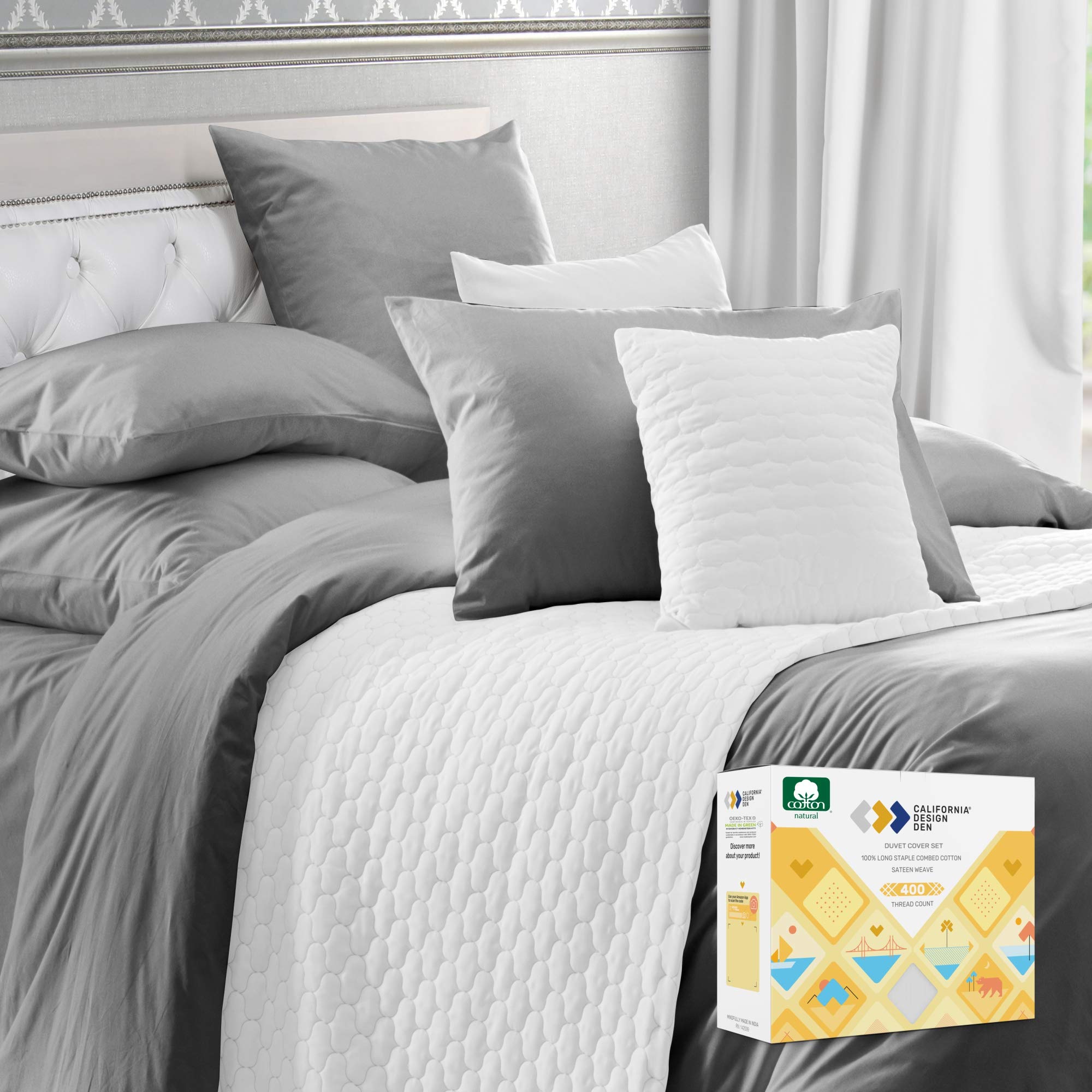 غطاء لحاف كاليفورنيا ديزاين دن مصنوع من القطن الحقيقي بنسبة 100 عدد الخيوط 400 غطاء لحاف بجودة فندق نسيج حريري حريري يغلق بأزرار وأربطة زوايا قطعة واحدة رمادي داكن مقاس كبير Amazon Ae