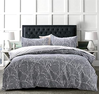 طقم غطاء لحاف من القطن 100 قطن 3 قطع مقاس كينج مع أربطة جانبية رمادية اللون من بي إف Amazon Ae