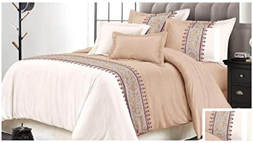طقم سرير مريح للمنزل مقاس كينغ 6 قطع قطن 100 1 غطاء لحاف 220x240 1 ملاءة سرير 250x270 4 غطاء وسادة 50x80 1018 بيج Amazon Ae