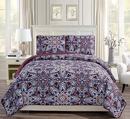 Fancy Linen 3 قطع مفرش سرير مجموعة أكثر من حجم غطاء سرير مع أزهار عنابي أزرق أزرق مخضر أحمر أبيض جديد عنابي Full Queen Amazon Ae