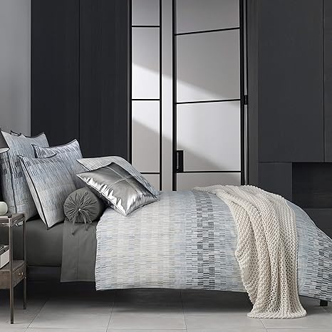 طقم لحاف سرير Grandlinen أزرق مخضر رمادي أصفر رمادي في حقيبة بطيات مزدوجة كامل ملكة كينغ وكاليفورنيا مقاس Cal King California King Amazon Ae