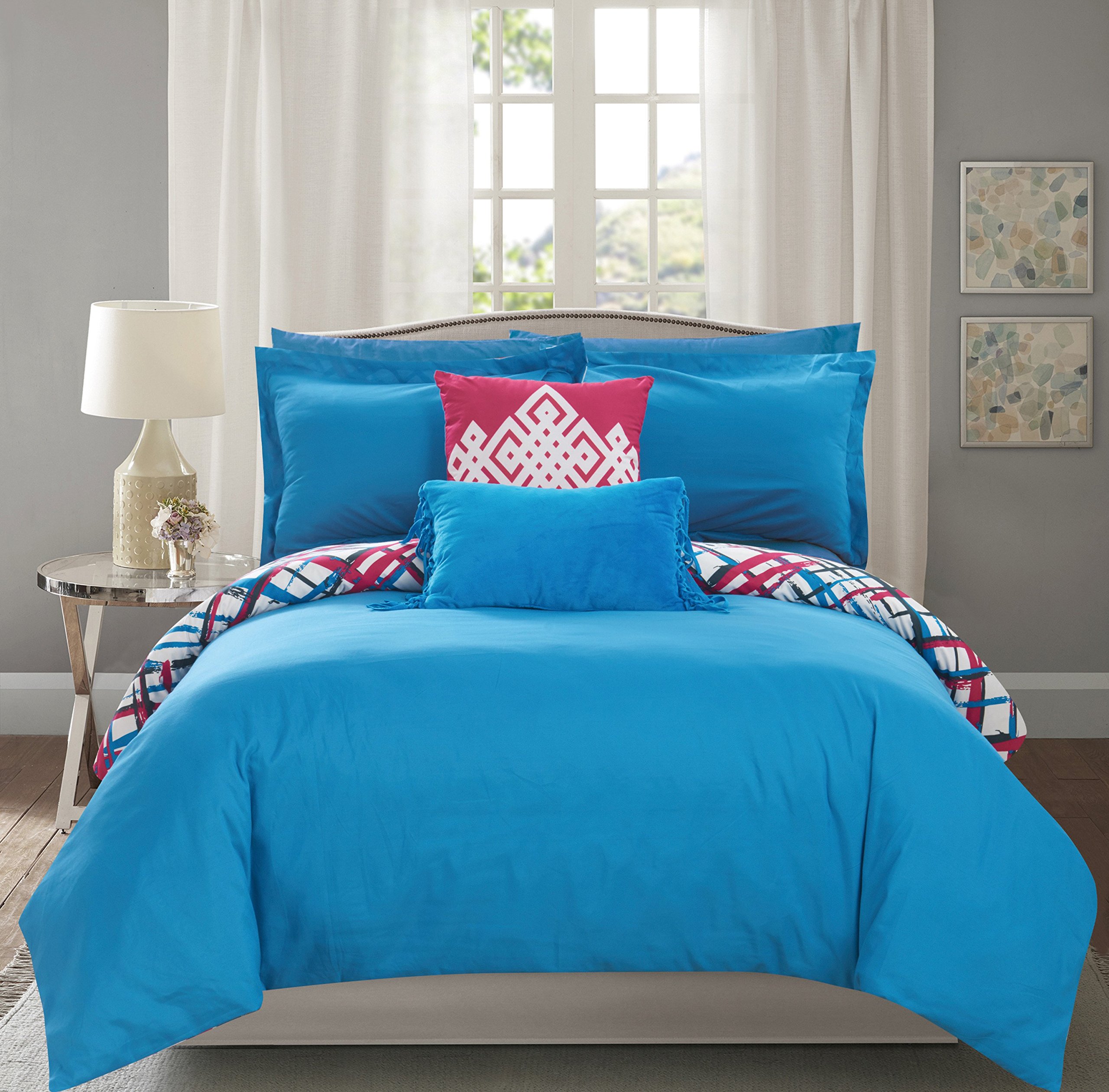 طقم لحاف من Chic Home مصنوع من 9 قطع بتصميم مطبوع تجريدي مجموعة ملاءات تتضمن وسادات مزخرفة Twin Amazon Ae