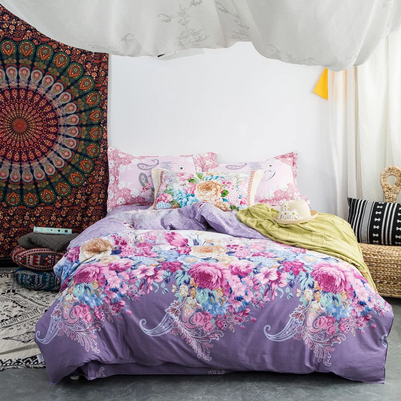 مجموعات الفراش المطبوعة البوليستر و القطن المنسوجات المنزلية غطاء لحاف تصميم الأزهار ملاءة سرير غطاء السرير سرير التوأم كاملة الملكة الزهور Bed In A Bag Clearance Textile Vinylbed Linen For Children Aliexpress