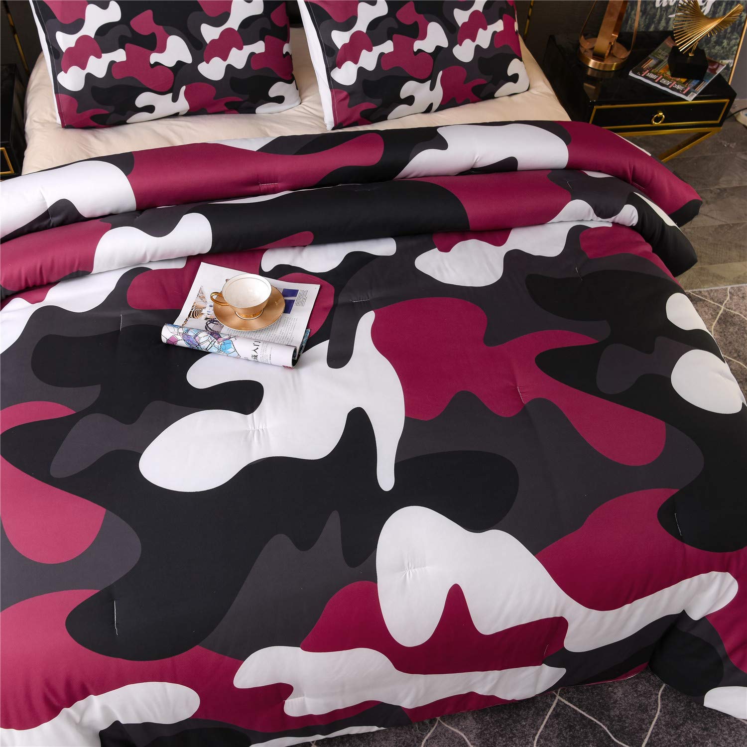 مجموعة لحاف من Holawakaka بالحجم الكامل للجيش المموه للبنات والأولاد والمراهقين مجموعات سرير مموهة للرجال أحمر كامل Amazon Ae