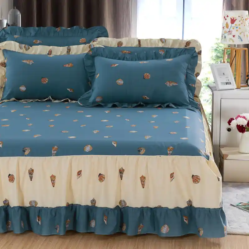 1 قطعة المفرش 2 قطعة سادات صدف على الشاطئ طقم سرير فاخر رخيصة الأزرق غطاء السرير كشكش المفرش القطن السرير مفرش سرير Aliexpress