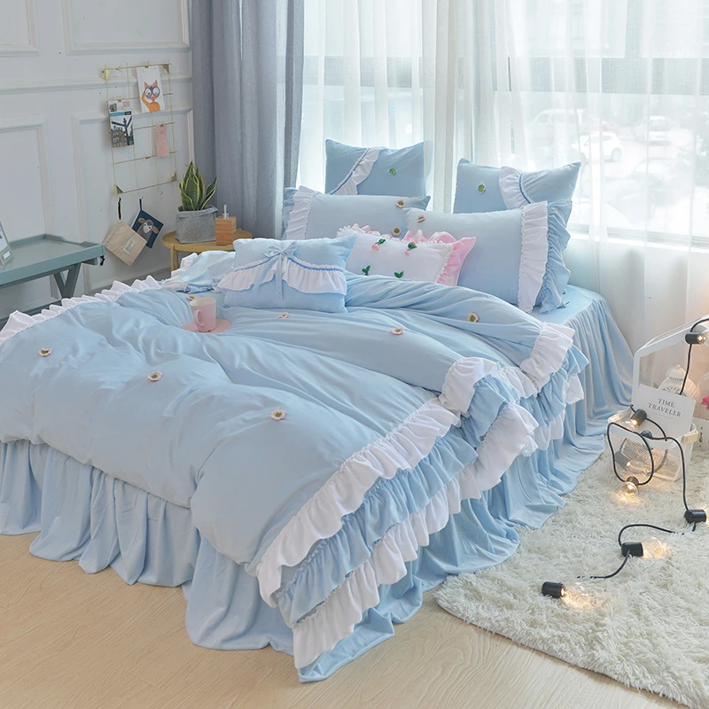 الرعوية الأزرق الأزهار طقم سرير التوأم كامل الملكة الملك القطن الشمال واحدة مزدوجة المنسوجات المنزلية تنورة نوم كيس وسادة غطاء لحاف Aliexpress