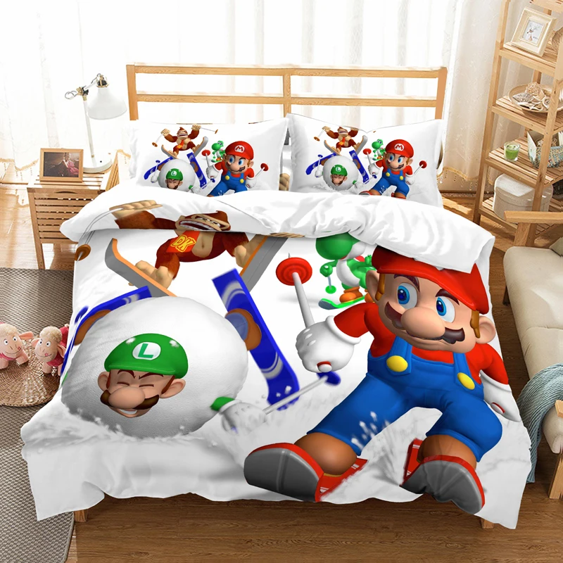 شراء سوبر ماريو بروس طقم سرير أغطية لحاف سادات ماريو الأطفال غرفة ديكور مجاميع راحة الفراش أغطية أغطية سرير حديث