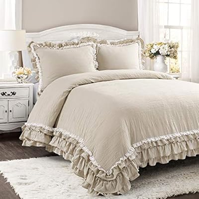 طقم لحاف 3 قطع من الدانتيل المكشكش إيلا شابه محايد من لاش ديكور كينغ Amazon Ae