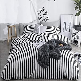 Lamejor لحاف الغطاء تعيين حجم الملك البساطة نمط مخطط مخطط ة الفاخرة الفراش الناعمة مجموعة غطاء المعزي 1 غطاء لحاف 2 وسائد أسود أبيض Buy Products Online With Ubuy