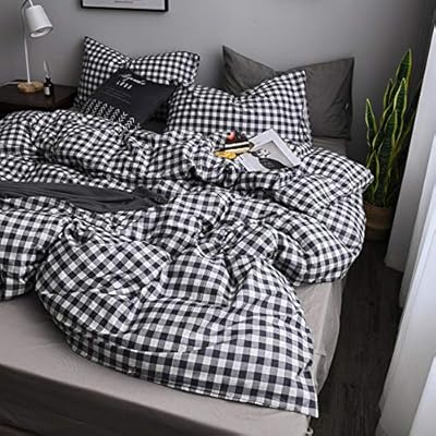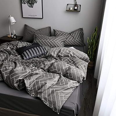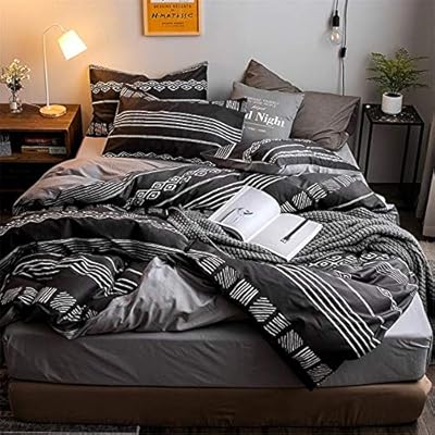 طقم غطاء لحاف منقوش 100 قطن أسود مخطط 4 قطع غطاء لحاف عصري بسيط بسح اب من الألياف الدقيقة خفيفة الوزن لجميع فصول السنة Amazon Ae