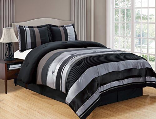 طقم لحاف من 4 قطع مخطط من نسيج شانل من Grand Linen سرير مزدوج كامل وكوين وكينج وكيك كينج باللون الأرجواني والأسود والرمادي والأزرق الداكن اسود California King Amazon Ae