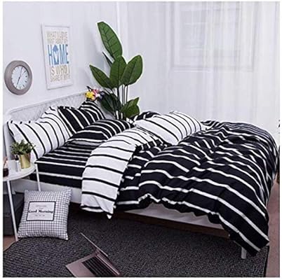 Lamejor لحاف الغطاء تعيين حجم الملك البساطة نمط مخطط مخطط ة الفاخرة الفراش الناعمة مجموعة غطاء المعزي 1 غطاء لحاف 2 وسائد أسود أبيض Buy Products Online With Ubuy