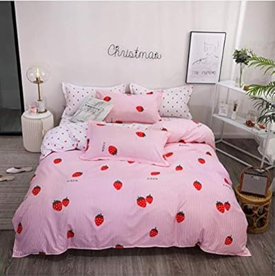 طقم مفارش سرير 4 قطع وردي مخطط بلون الفراولة جميلة مطبوعة متعددة التصاميم لحاف لحاف مزدوج 200 230 سم King 220x240cm Amazon Ae
