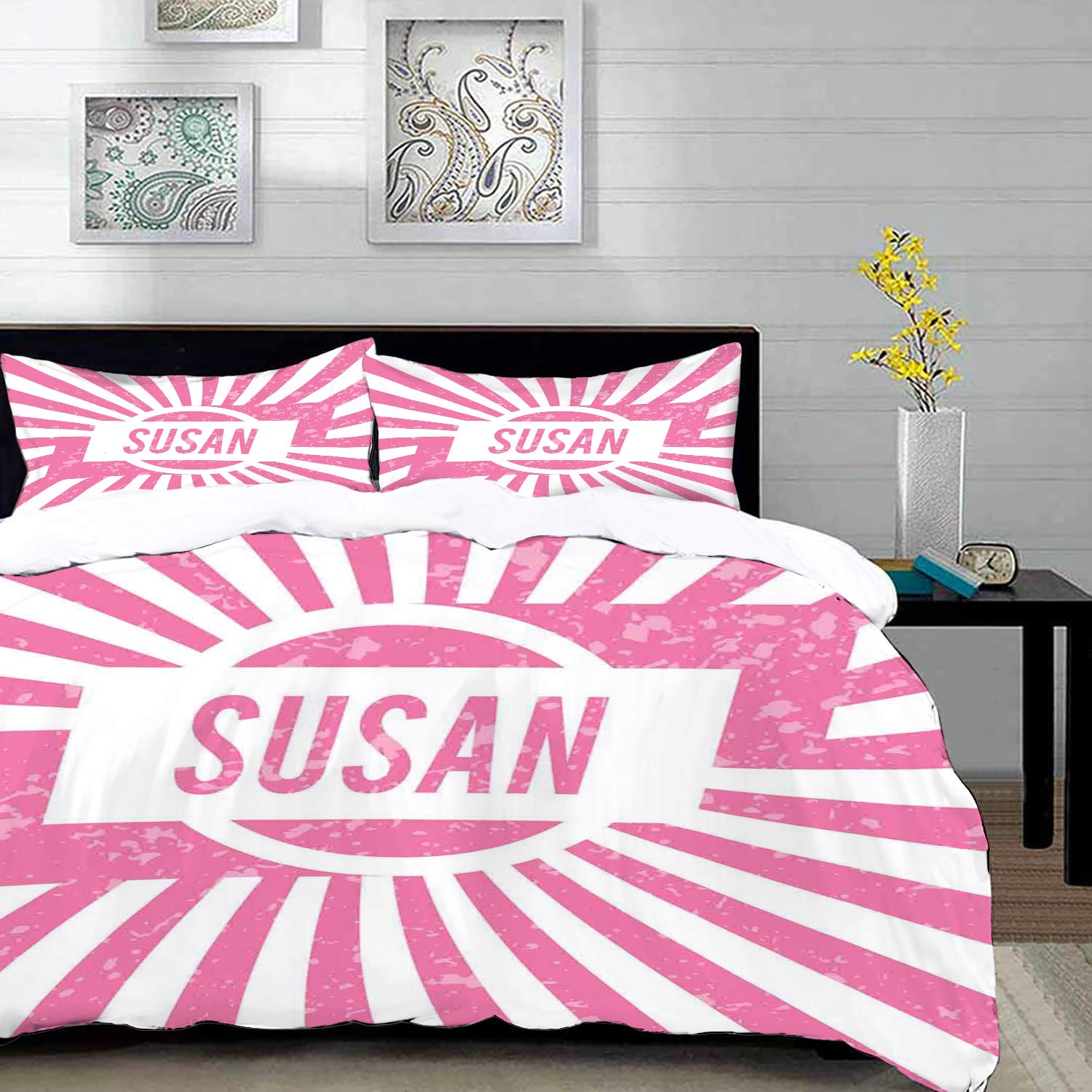 مجموعة الفراش سوزان اسم أنثى مع تأثير الجرونج عيد ميلاد فتاة الاحتفال مخطط خلفية شاحب وردي وأبيض غطاء لحاف واحد وسائد 50 80 سم Buy Online At Best Price In Uae Amazon Ae