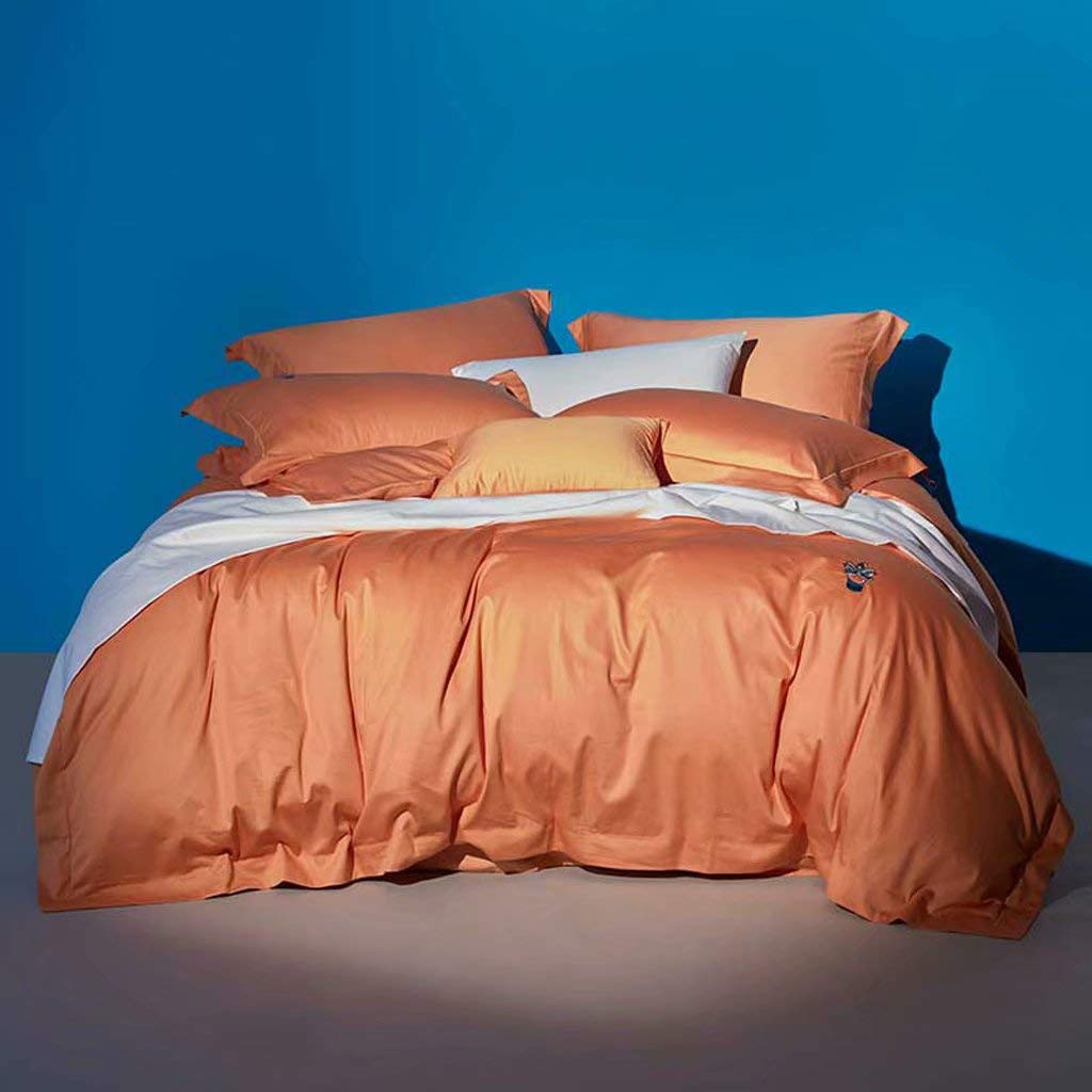 4 قطع مفرش سرير قطني طويل 60s ملاءات غطاء لحاف قطني غطاء لحاف مزدوج نمط صيني مطرز 200 230 سم قطن برتقالي 220 250cm Amazon Ae