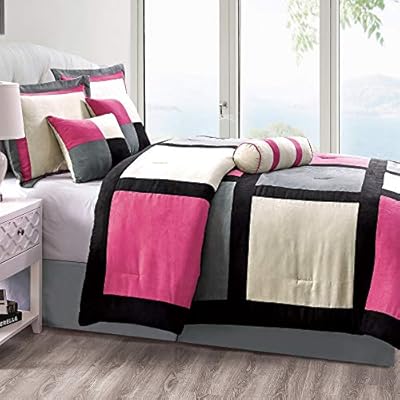 طقم لحاف 5 أو 7 قطع بنمط مرقع من Grandlinen بألوان متعددة بمقاسات توأم وكاملة وملكة وكال كينغ وكال مع ستائر مطابقة King Amazon Ae